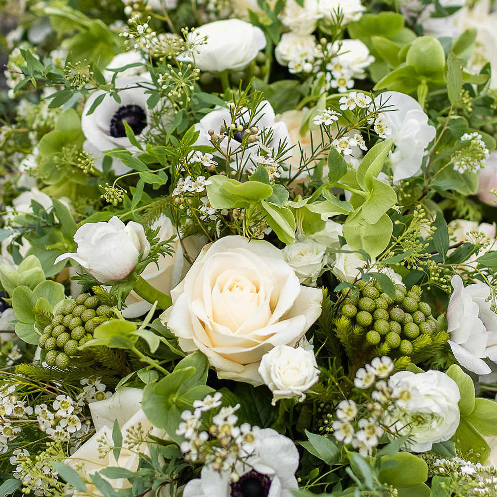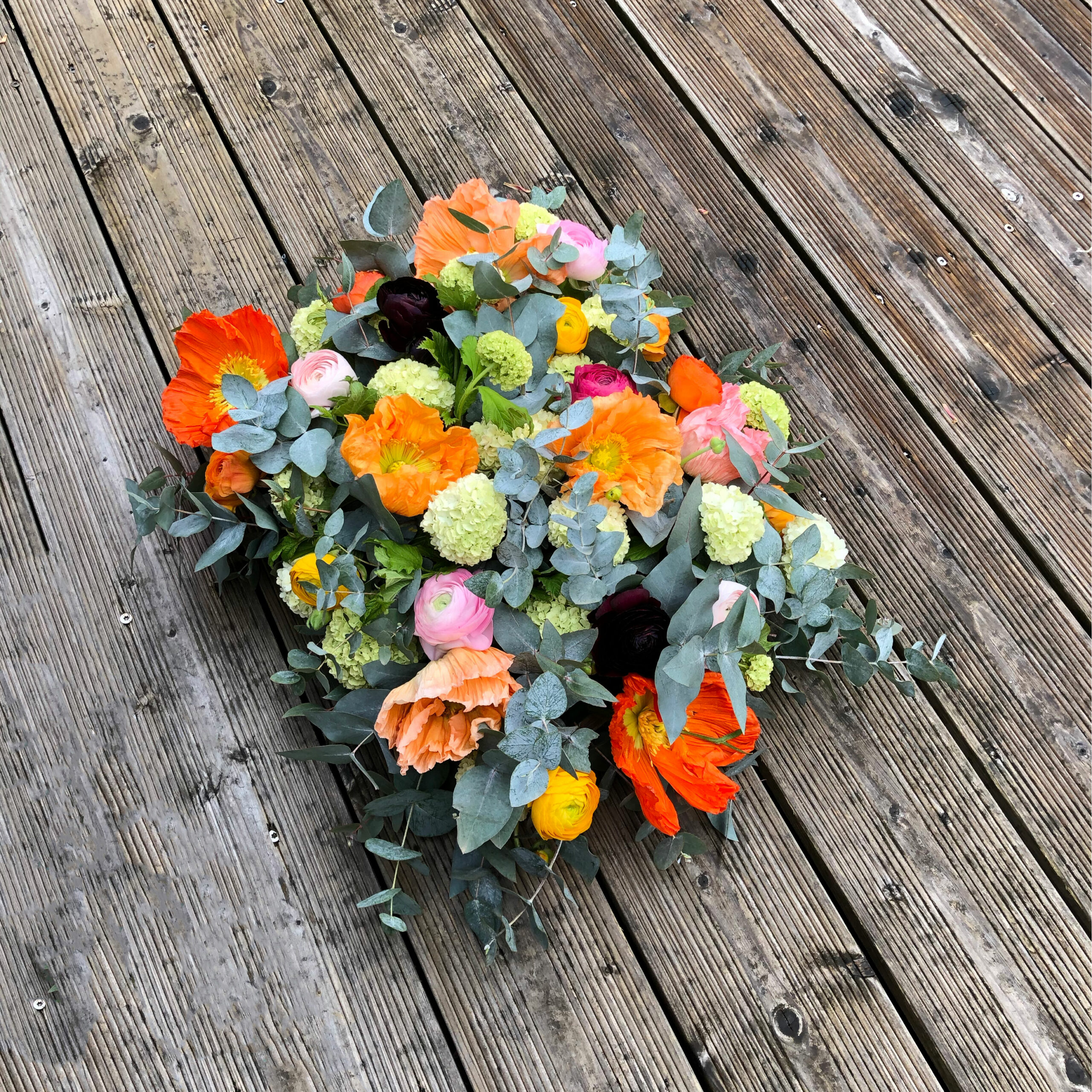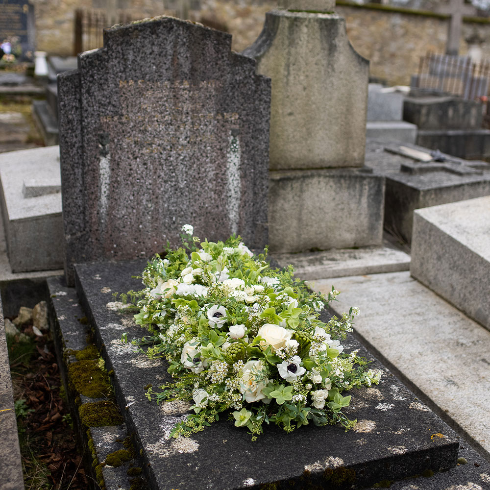 Prévu pour être disposé sur le cercueil du défunt, puis sur la tombe, c’est la composition la plus imposante de notre gamme et est le plus souvent réservée aux très proches.